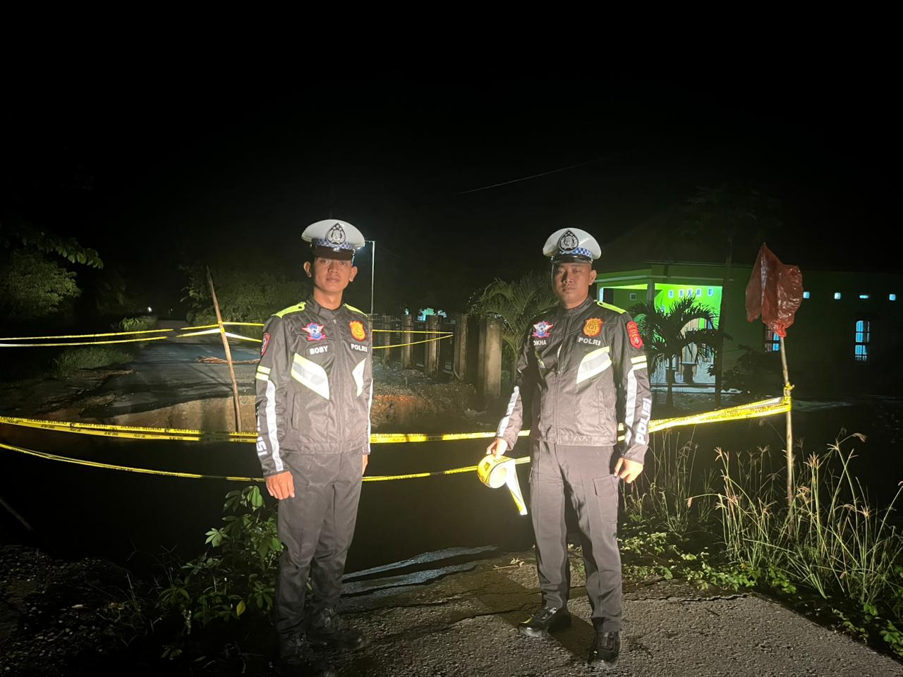 Jalan Putus Akibat Curah Hujan Tinggi, Satlantas Polres Konsel Pasang Tanda Peringatan. Ini Lokasinya..!!