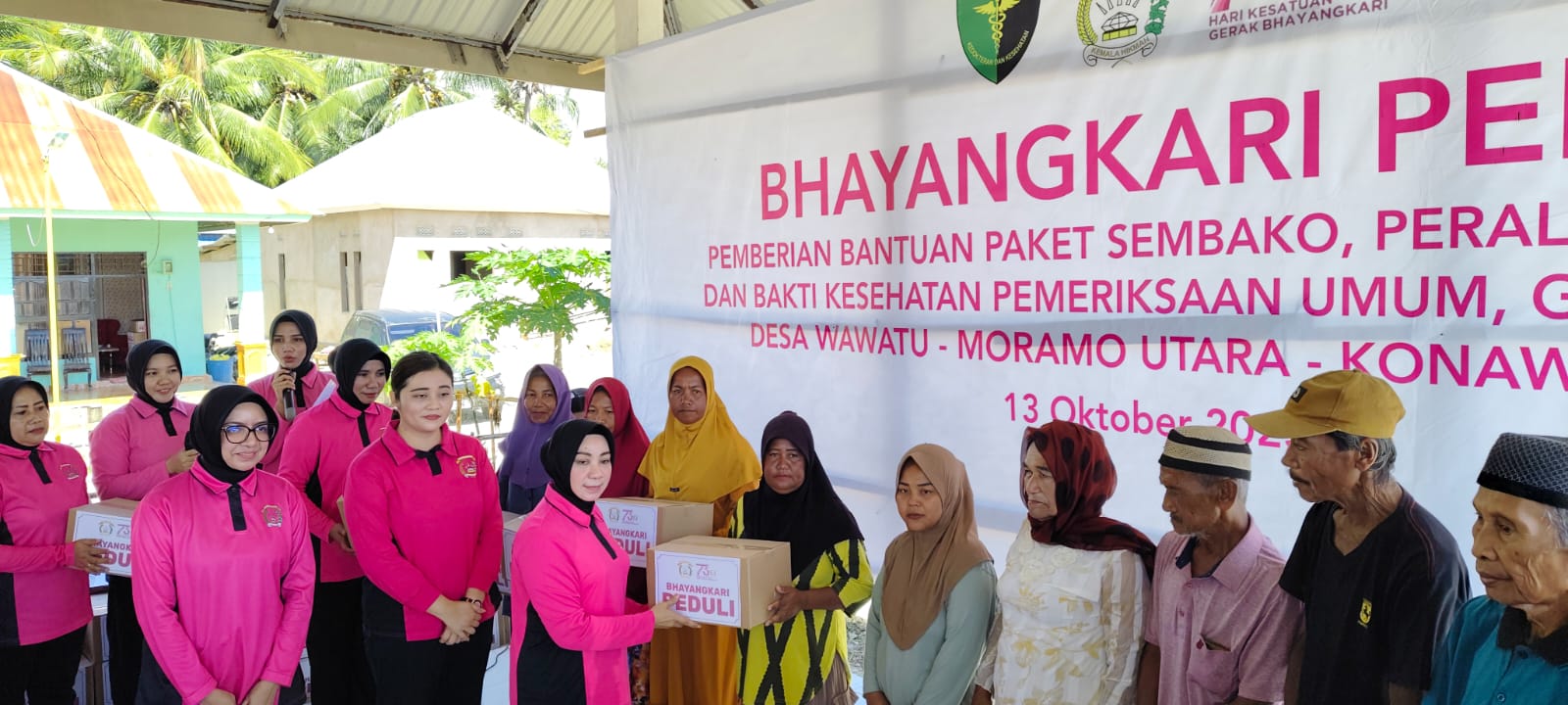 Sebagai bagian dari rangkaian kegiatan, Bhayangkari menyerahkan 130 paket sembako kepada warga kurang mampu serta peralatan sekolah bagi anak-anak SD di Desa Wawatu. Selain itu, juga dilaksanakan pemeriksaan kesehatan umum, gigi, dan mulut bagi masyarakat setempat.