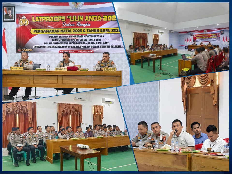 Bertempat di Aula Pesat Gatra Polres Konawe Selatan ( Konsel ) dilakasanakan latihan Pra Operasi Lilin Anoa – 2025. Diketahui bahwa operasi tersebut dilaksanakan dalam rangka pengamanan perayaan Natal 2025 dan Tahun baru 2026.