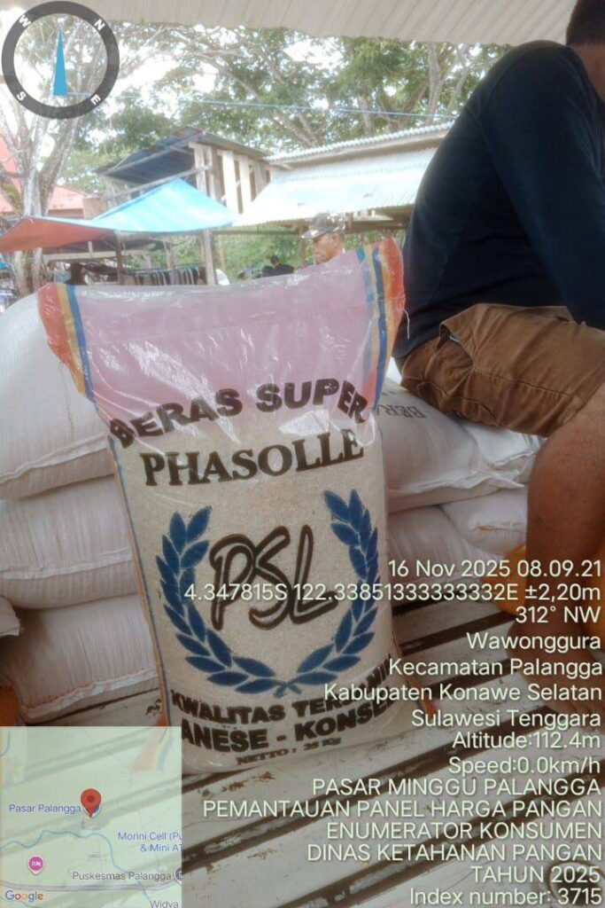 Bertempat di pasar Desa Wawonggura Kecamatan Palangga Kabupaten Konawe Selatan ( Konsel ) , Satgas Pengendalian Harga Beras Polres Konsel yang dipimpin oleh Kanit II Satreskrim IPDA Awaluddin Pratomo bersama Disperindag Konsel melakukan pengecekan ketersediaan sembako ( Sembilan Bahan Pokok ) terutama beras.