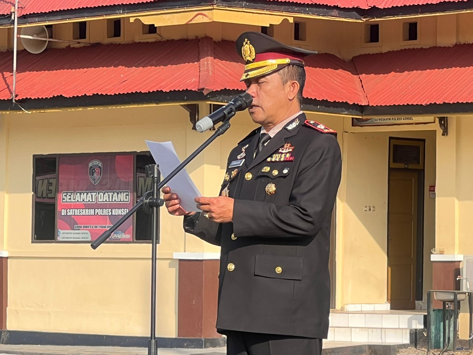 Selaku Inspektur upacara Wakapolres Konsel Kompol Dr. Fitrayadi, S.Sos SH, MH dan bertindak Komandan upacara Kapolsek Laonti IPDA  Ali Alamsyah. Adapun peserta Upacara meliputi seluruh pejabat utama , Kapolsek Jajaran dan seluruh personel serta ASN Polres Konsel.