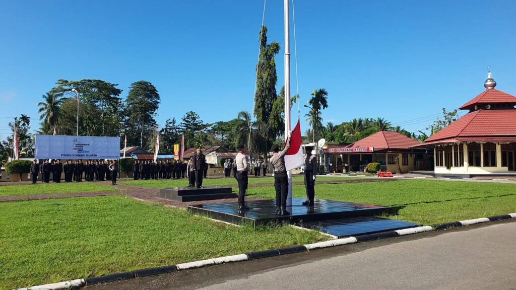 Dalam pelaksanaan Upacara tersebut dipimpim Wakapolres Konsel Kompol Dr. Fitrayadi, S.Sos, SH, MH dengan Komandan Upacara IPDA Kailullah.