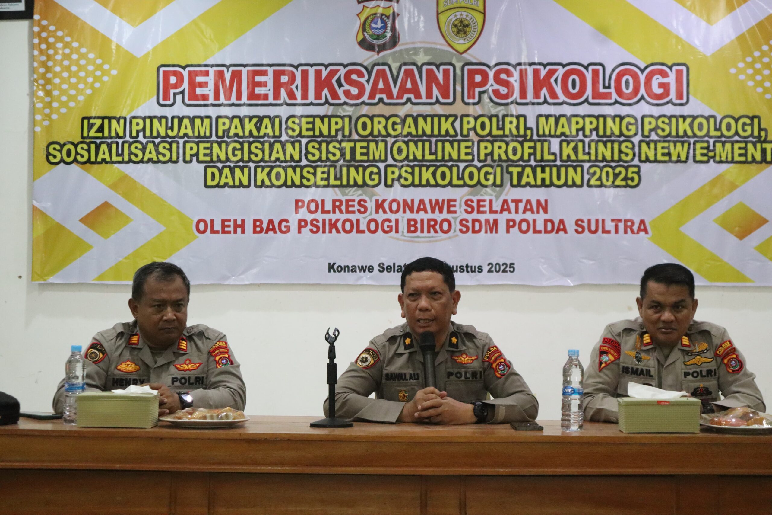 Kapolres Konsel AKBP Febry Sam, SIK, M.Si melalui Kabag SDM AKP Henry Refiles, S.Si mengatakan bahwa tes psikologi terhadap personel Polres Konsel dalam rangka tes kejiwaan bagi personel yang meminjam pakai senjata api. Henry Rafiles juga menyampaikan bahwa tes psikologi tersebut juga dalam rangka konseling terhadap personel.