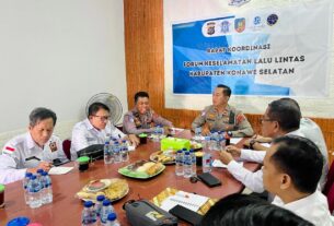 Konawe Selatan – ” Pelayanan yang ramah dan responsif harus menjadi prioritas selama pengamanan mudik lebaran 2025. Tampilkan sosok petugas yang humanis, berikan edukasi dan imbauan kepada pengemudi untuk istirahat sejenak guna menghindari  microsleep, lakukan pengecekan kesehatan  pengemudi, kondisi kendaraan, kesiapan ramburambu dan lampu penerangan, serta siagakan personel pada titik-titik rawan kecelakaan. Pastikan masyarakat dapat  memahami informasi terkait layanan kepolisian, pesan pesan kamtibmas, dan penerapan rekayasa lalu lintas. Optimalkan layanan 110 sebagai hotline pelayanan, pengaduan dan pelaporan tanggap darurat, baik terhadap gangguan kamtibmas maupun kemacetan pada jalur mudik ” Ucap Kapolres Konsel AKBP Febry Sam , SIK, M.Si saat membacakan amanat Kapolri dalam Apel Gelar Pasukan Operasi Ketupat 2025 . Kamis ( 20 / 3 / 2025 ).