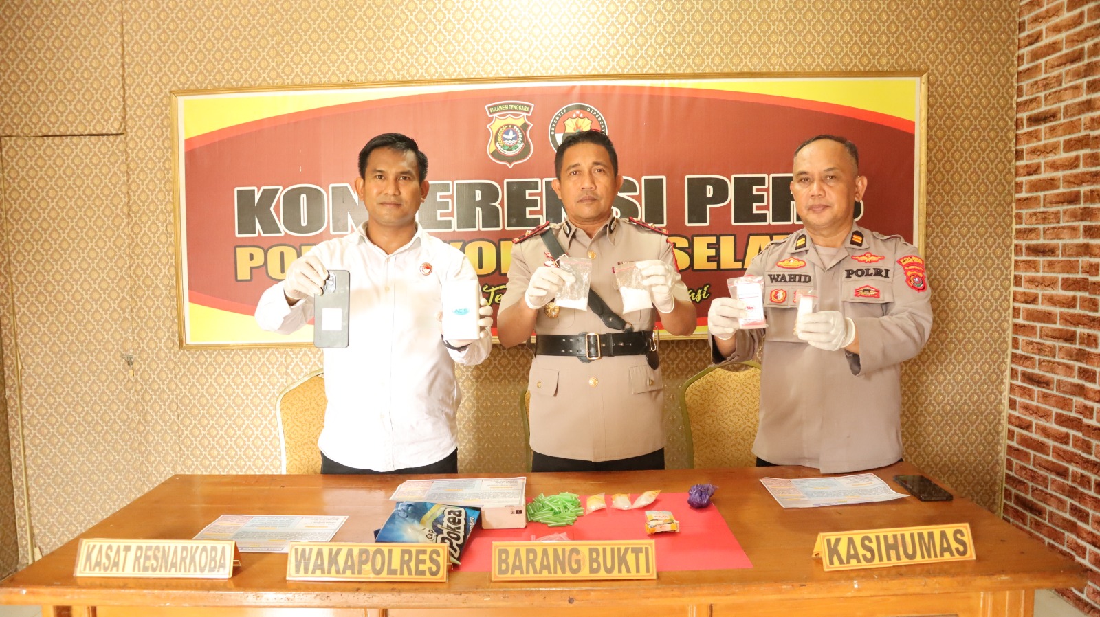 Wakapolres Konsel, Kompol DR Fitrayadi pada saat memimpin konfersensi pers pada Rabu (28 /1/2026) menjelaskan, bahwa saat dilakukan penggeledahan , diketemukan narkoba jenis sabu siap edar dengan berat 34,03 gram Bruto.