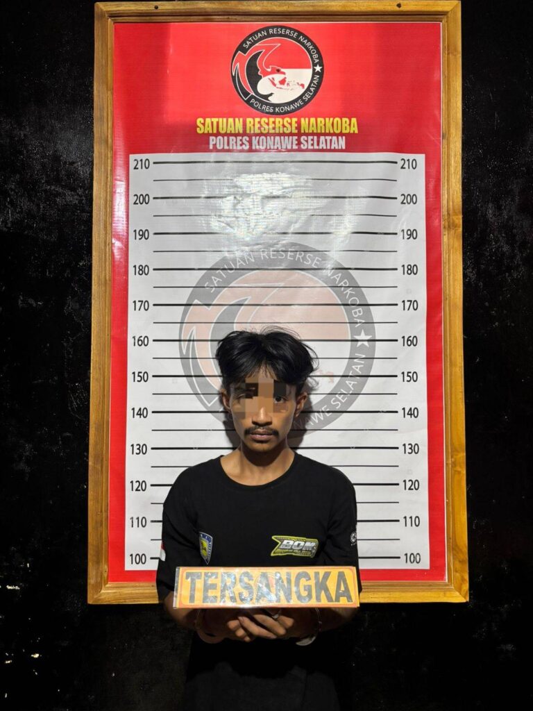 Konawe Selatan – Satuan Reserse Narkoba (Satresnarkoba) Polres Konawe Selatan (Konsel) Polda Sulawesi Tenggara (Sultra) kembali mencetak prestasi dalam upaya memberantas peredaran gelap narkotika di wilayah hukumnya. Jumat (7/11/2025) sekitar pukul 01.00 Wita, petugas berhasil mengungkap kasus tindak pidana narkotika jenis sabu di Desa Pamandati, Kecamatan Lainea, Kabupaten Konawe Selatan.
